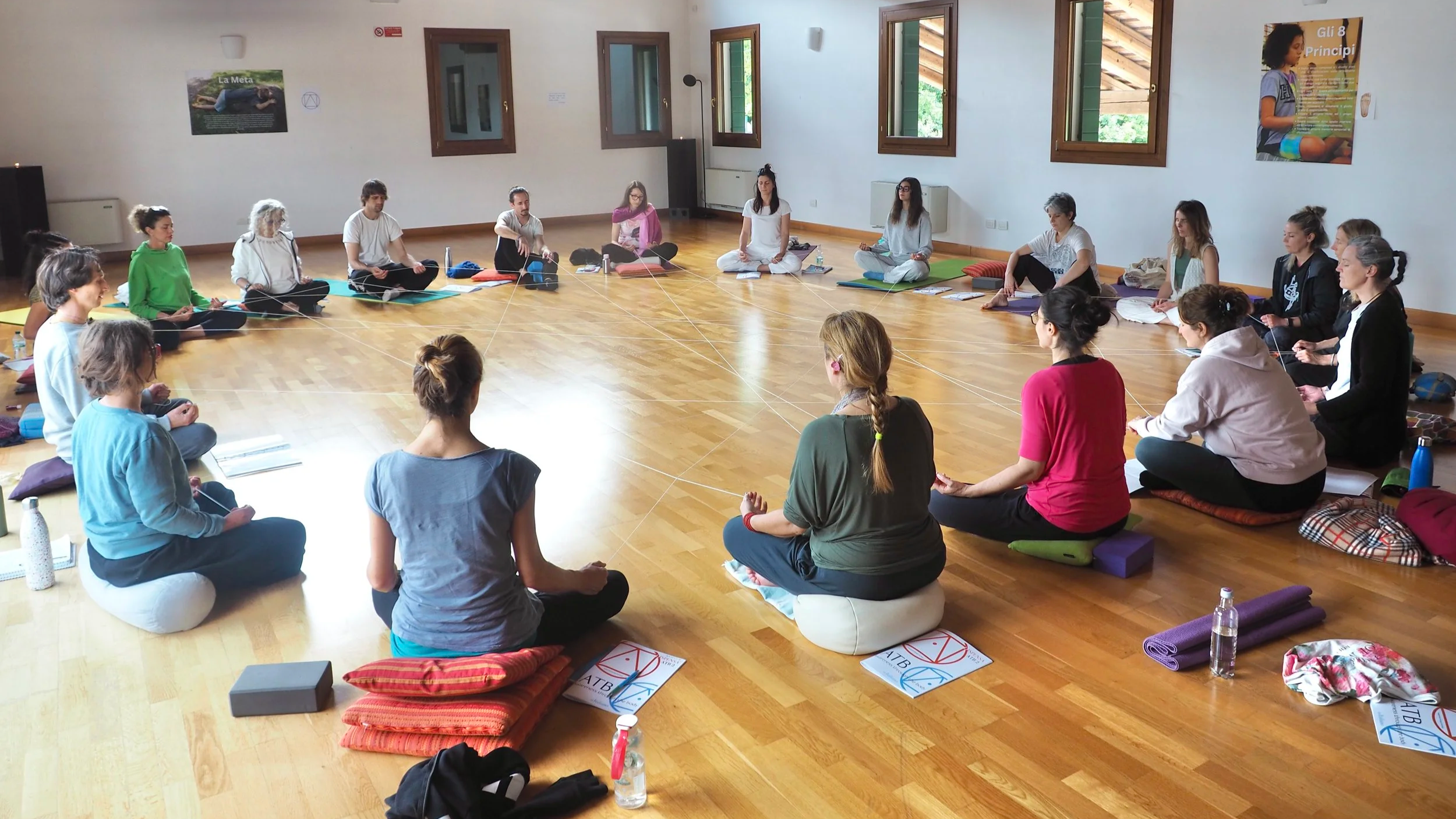 Materiali: Dispensa con la descrizione dettagliata sia teorica che pratica delle attività del corso. Registrazioni audio degli esercizi di interiorizzazione guidati durante il corso & registrazioni audio aggiuntive. Bibliografia e videografia del corso. Album fotografico.